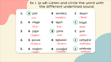 Pronunciation, Vocabulary, Grammar Pronunciation Can you give me example? 01 02 03 /i/ & /i:/ /t/ & /d/ /s/ & / ∫/