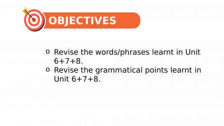 o Revise the words/phrases learnt in Unit 6+7+8.