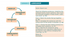 o Revise the grammatical points learnt in Unit 6+7+8. LESSON 1 LANGUAGE Uni GETTING STARTED WARM t -UP Game: Board race