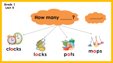 Unit 11: At the bus shop. Unit 12: At the lake. Grade 1 Unit 9 How many _____? _____. clocks mops locks pots Grade 1 Unit 10 That’s a _______. that’s = that is horse mother monkey mouse mango