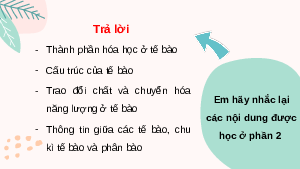 - Thành phần hóa học ở tế bào - Cấu trúc của tế bào