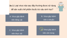để sản xuất chế phẩm thuốc trừ sâu sinh học? A. Virus gây bệnh B. Virus gây bệnh trên động vật trên vi khuẩn C. Virus gây bệnh D. Virus gây bệnh trên thực vật trên côn trùng