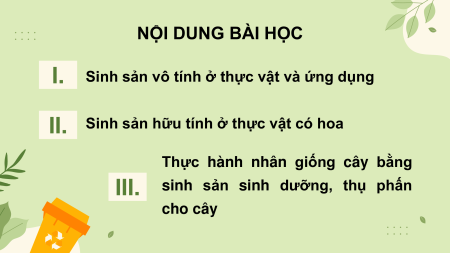 SINH SẢN Ở THỰC VẬT NỘI DUNG BÀI HỌC I.