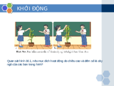 Quan sát hình 30.1, nêu mục đích hoạt động đo chiều cao và đếm số lá cây