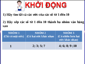 (Chỉ có một ước) (Có hai ước khác nhau (Có nhiều hơn hai ước khác nhau) 1 2; ;3 ;5 ;7 4; ;6 ;8; 9;10