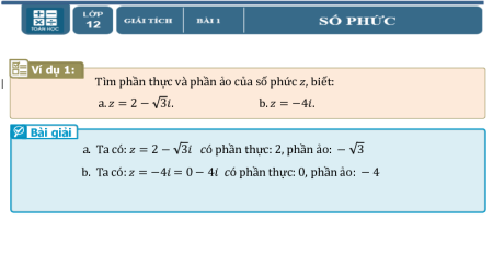 Tìm phần thực và phần ảo của số phức ?, biết: a. ? = 2 − 3?. b. ? = −4?. Bài giải