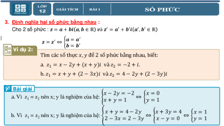 Vì z = z nên x; y là nghiệm của hệ: ⇔ ⇔ 1 2 2 − 3? = 2 − 3? ? − ? = 0 ? = 1