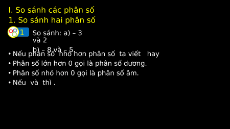 BÀI 2: SO SÁNH CÁC PHÂN SỐ. HỖN SỐ DƯƠNG I. So sánh các phân số 1. So sánh hai phân số 1 So sánh: a) – 3 và 2 b) – 8 và – 5.