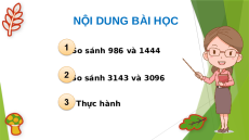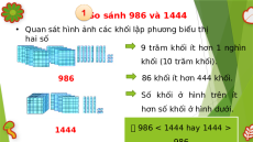 được một phần quà từ GV. SO SÁNH CÁC SỐ CÓ BỐN CHỮ SỐ (tiết 1) NỘI DUNG BÀI HỌC So sánh 986 và 1444 So sánh 3143 và 3096 Thực hành