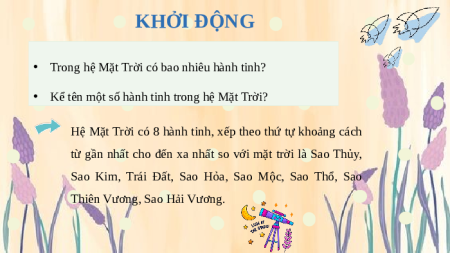 • Kể tên một số hành tinh trong hệ Mặt Trời?