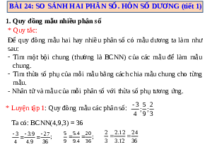 BÀI 24: SO SÁNH HAI PHÂN SỐ. HÔN SỐ DƯƠNG
