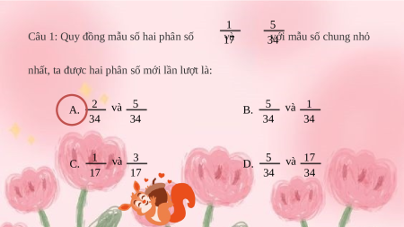 Câu 1: Quy đồng mẫu số hai phân số và với mẫu số chung nhỏ 17 34
