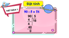 Tên bài: So sánh số lớn gấp mấy lần số bé Đặt tính 90 : 5 = ? 90 : 5 = 18 90 5 0 4 18 4 40 0