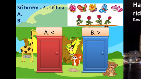 Số bướm ..?.. số hoa Han River b A. ridge B. Danang Vietnam A. < B. >