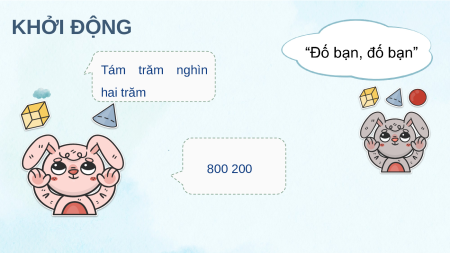 CHÀO MỪNG CÁC EM ĐẾN VỚI BUỔI HỌC NGÀY HÔM NAY! KHỞI ĐỘNG Tám trăm nghìn hai trăm 800 200 KHỞI ĐỘNG