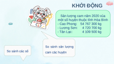 một số huyện thuộc tỉnh Hòa Bình - Cao Phong: 54 767 300 kg - Lương Sơn: 4 720 700 kg - Tân Lạc: 4 109 500 kg So sánh sản lượng So sánh các số cam các huyện BÀI 27: SO SÁNH VÀ XẾP THỨ TỰ CÁC SỐ TỰ NHIÊN