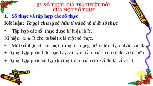 §2. SỐ THỰC. GIÁ TRỊ TUYỆT ĐỐI CỦA MỘT SỐ THỰC