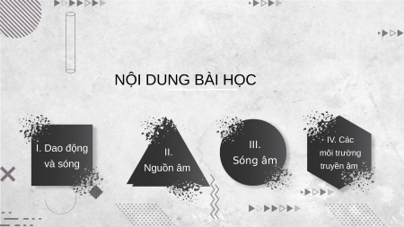 (BỘ SÁCH KẾT NỐI TRI THỨC VỚI CUỘC SỐNG) CHƯƠNG IV: ÂM THANH BÀI 12: SÓNG ÂM NỘI DUNG BÀI HỌC IV. Các I. Dao động III. II. môi trường và sóng Sóng âm Nguồn âm truyền âm