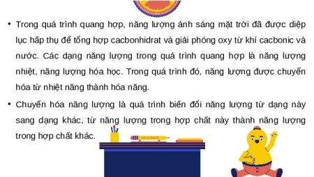 nhiệt, năng lượng hóa học. Trong quá trình đó, năng lượng được chuyển