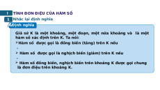 Hàm số được gọi là đồng biến (tăng) trên K nếu