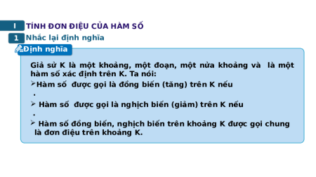 I TÍNH ĐƠN ĐIỆU CỦA HÀM SỐ