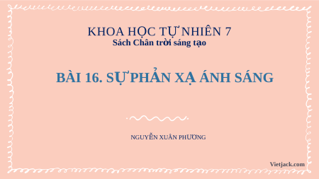 KHOA HỌC TỰ NHIÊN 7 Sách Chân tr i ờ sáng t o ạ BÀI 16. S P Ự H N Ả X Á Ạ NH SÁNG NGUY N Ễ XUÂN PHƯ N Ơ G Vietjack.com Làm th ế A nào đ ể h t ắ ánh sáng vào đúng điểm A trên tường? Gư n ơ g phẳng C Ọ H Hi H n ệ t ư n ợ g ph n ả x ạ án h s h án á g I BÀ G N Đị Đ nh lu t ậ ph n ả x ạ U D ánh sáng ỘI N Ph n ả x ạ và ph n ả x kh ạ uy ch t ế án á 1. HI N Ệ T N ƯỢ G PH N Ả X Ạ ÁNH SÁNG