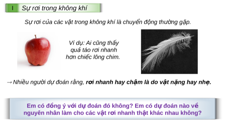 ư nhau. Em có suy nghĩ gì v ề hi n ệ tư ng ợ này? I S ự r i ơ trong không khí S ự r i ơ c a ủ các v t