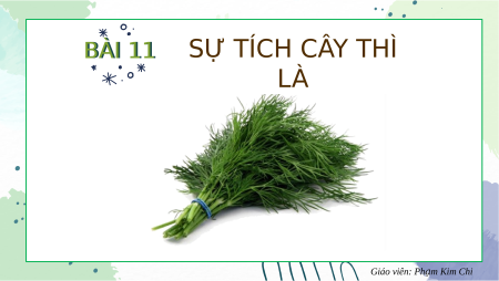 Nói tên một số cây rau mà em biết. BÀI 11 SỰ TÍCH CÂY THÌ LÀ Fe F i e st s yFo F r o wa w r a de d r e s_0 _ G 9 0i 6 9 8 6 á 1 8o 2 1 0 2v6 0i 7 6 2 7 ên: Ph m ạ Kim Chi SỰ TÍCH CÂY THÌ LÀ