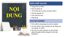 • Tính chất vật lí cơ bản của đơn chất S • Cấu tạo nguyên tử • Tính chất hoá học DUNG • Ứng dụng SULFUR DIOXIDE