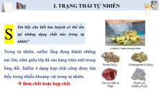 SULFUR VÀ SULFUR DIOXIDE 1 ĐƠN CHẤT SULFUR • Trạng thái tự nhiên • Cấu tạo phân tử NỘI