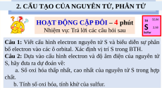 Câu 1: Viết cấu hình electron nguyên tử S và biểu diễn sự phân