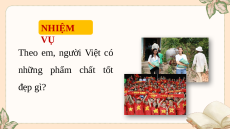 NGƯỜI THẦY THÔNG THÁI HÀM CHÂU 01 KHỞI ĐỘNG NHIỆM VỤ Theo em, người Việt có những phẩm chất tốt đẹp gì? 02 HÌNH THÀNH KIẾN THỨC MỚI