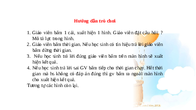1. Giáo viên bấm 1 cái, xuất hiện 1 hình. Giáo viên đặt câu hỏi: ?