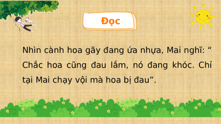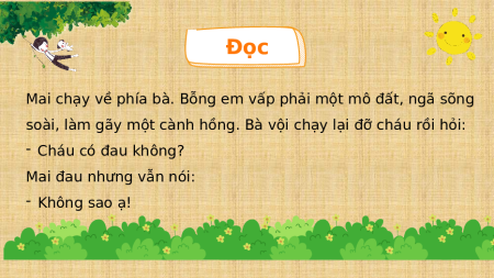 Mai chạy về phía bà. Bỗng em vấp phải một mô đất, ngã sõng
