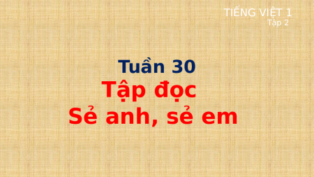 TIẾNG VIỆT 1 Tập 2 Tuần 30 Tập đọc Sẻ anh, sẻ em Khởi động TẬP ĐỌC