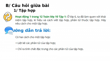 B/ Câu hỏi giữa bài 1/ Tập hợp