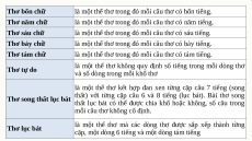 cặp câu 6 và 8 tiếng (lục bát). Bài thơ song thất lục bát có thể được chia khổ Thơ bốn chữ