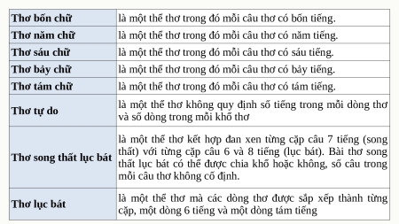 là một thể thơ không quy định số tiếng trong mỗi dòng thơ