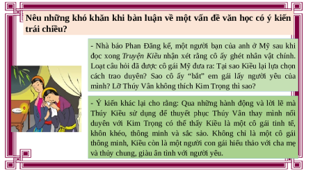 Nêu những khó khăn khi bàn luận về một vấn đề văn học có ý kiến trái chiều?