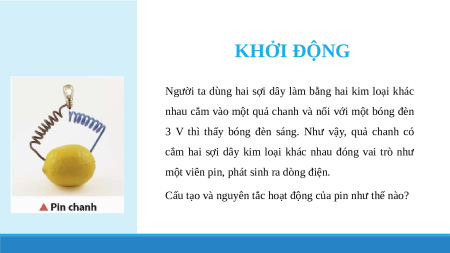 3 V thì thấy bóng đèn sáng. Như vậy, quả chanh có
