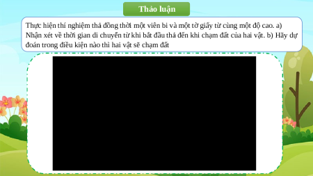 Nhận xét về thời gian di chuyển từ khi bắt đầu thả đến khi chạm đất của hai vật. b) Hãy dự