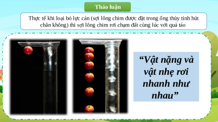 Giả sử bạn có một quả táo và một cái lông chim, khi thả rơi chúng thì