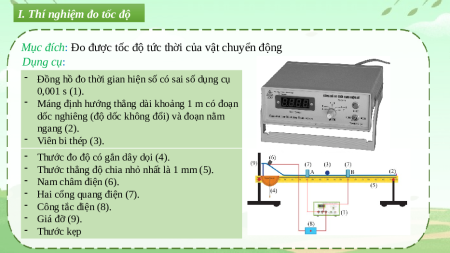 Mục đích: Đo được tốc độ tức thời của vật chuyển động Dụng cụ: