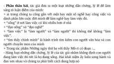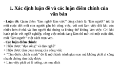 - Luận đề: Quan điểm “làm nghề/ làm việc” cũng chính là “làm người” tức là