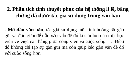 2. Phân tích tính thuyết phục của hệ thống lí lẽ, bằng