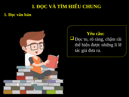 I. ĐỌC VÀ TÌM HIỂU CHUNG 1. Đọc văn bản Yêu cầu: