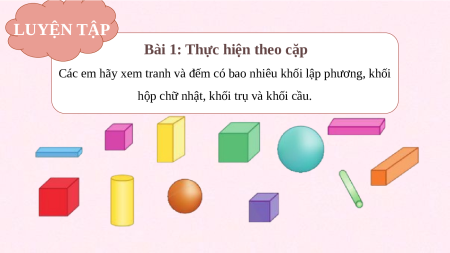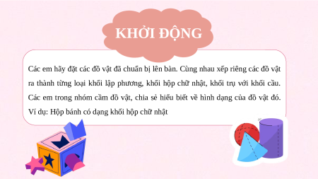 ra thành từng loại khối lập phương, khối hộp chữ nhật, khối trụ với khối cầu.