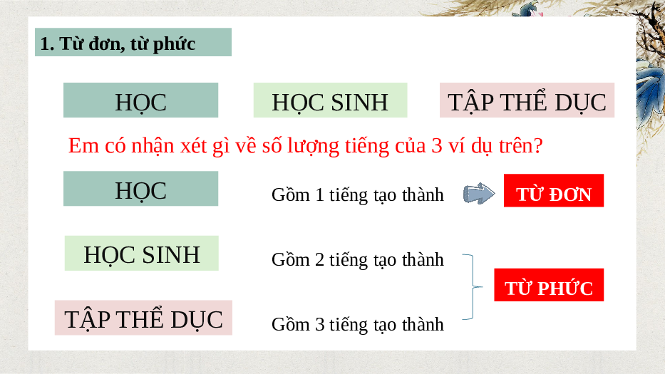1. Từ đơn, từ phức HỌC HỌC SINH TẬP THỂ DỤC