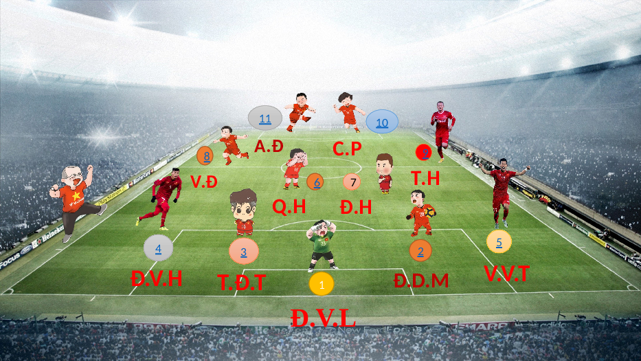 Xây Dựng Đội Hình Cùng HLV Park Hang Seo PLAY 11 10 A.Đ C.P 8 9 V.Đ 6 7 T.H Q.H Đ.H 4 5 3 2 Đ.V.H T.Đ.T V.V.T 1 Đ.D.M Đ.V.L