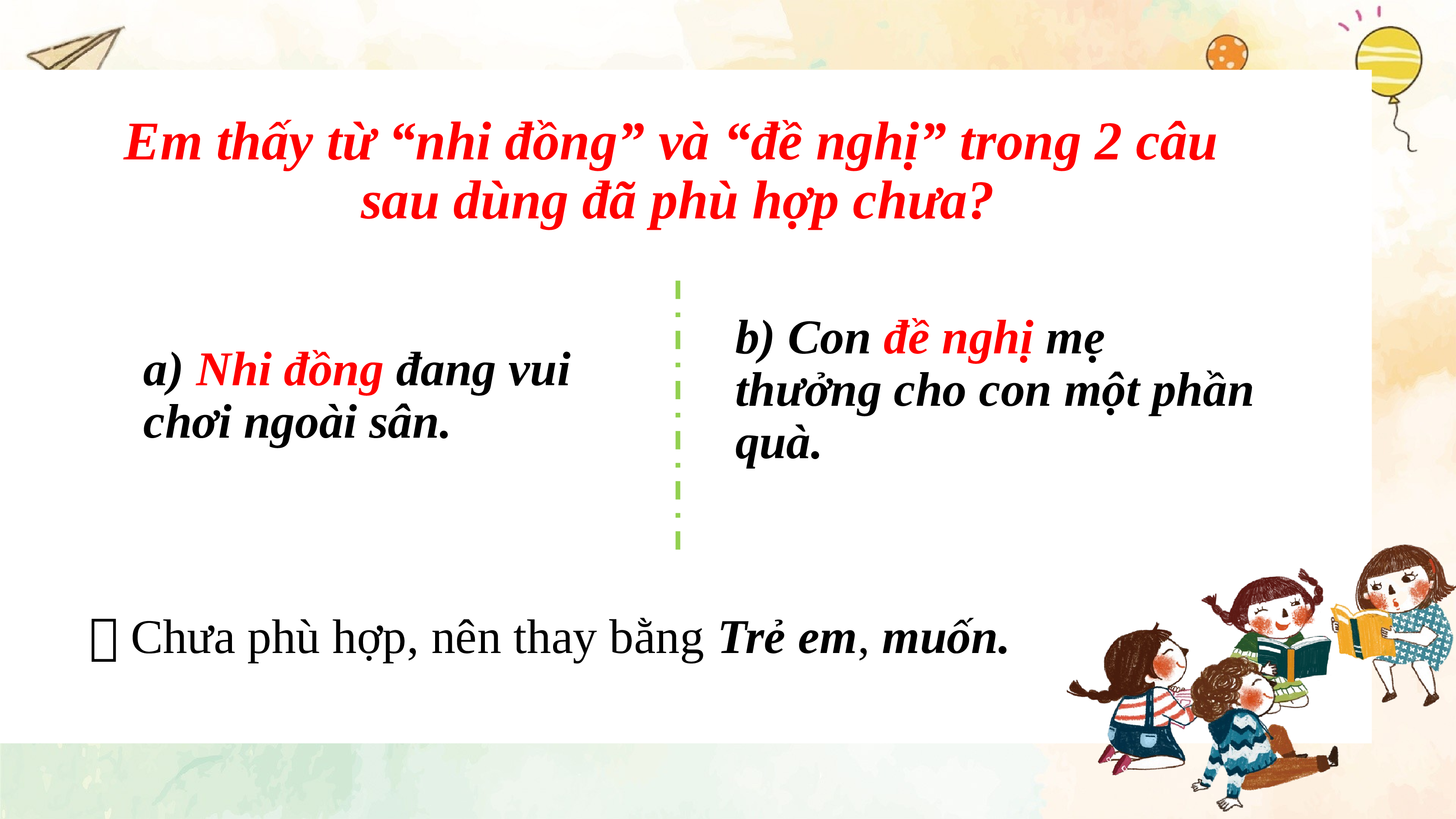 Chưa phù hợp, nên thay bằng Trẻ em, muốn.